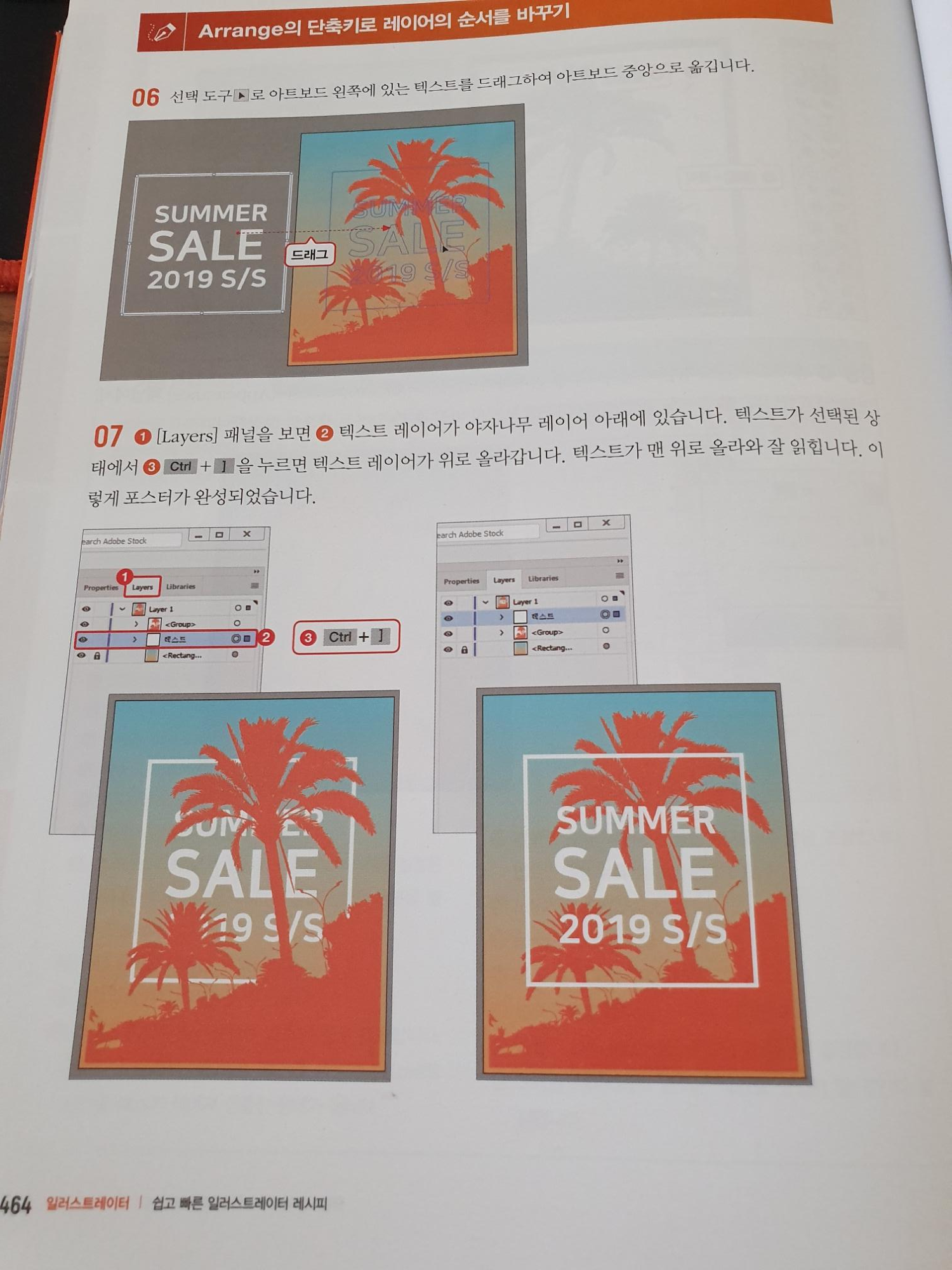 Arrange의 단축키로 레이어의 순서를 바꾸기