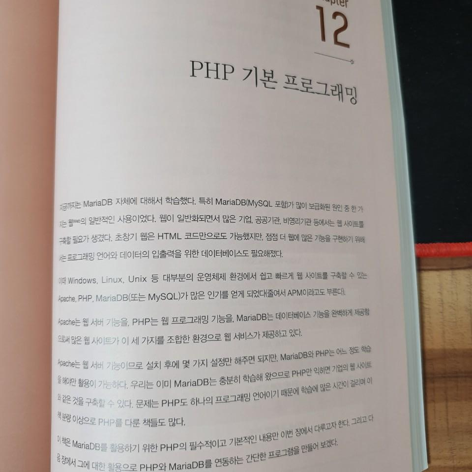 책을 읽다보면 내용이 점점 산으로 가는것을 느꼈습니다. 갑자기 PHP 프로그램에 대해서 나오게 됩니다. MariaDB 책을 샀는데 갑자기 PHP 기본 프로그래밍에 대한 내용을 다루고 있습니다. PHP 뿐 아니라 다른 방식으로 MariaDB를 다룰 수 있는데 이런 내용으로 책을 채운다는게 썩 좋게 보이지는 않네요.