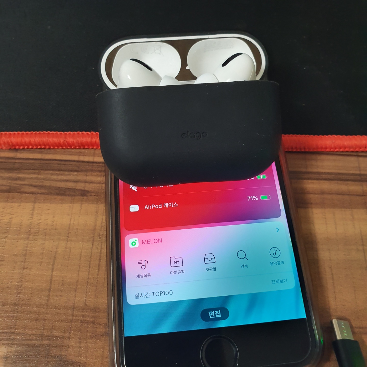클레버 타키온 충전기으로 에어팟 프로 충전 테스트를 진행했습니다. 에어팟 프로를 구입하게 되면 기본적으로 C to Lightning 케이블이 제공되고 있습니다.