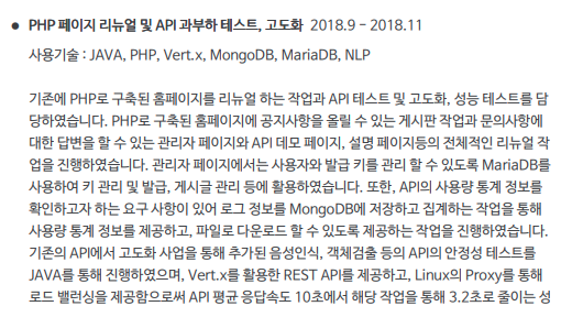 - 경력 기간 중 진행한 내용을 설명하시오.