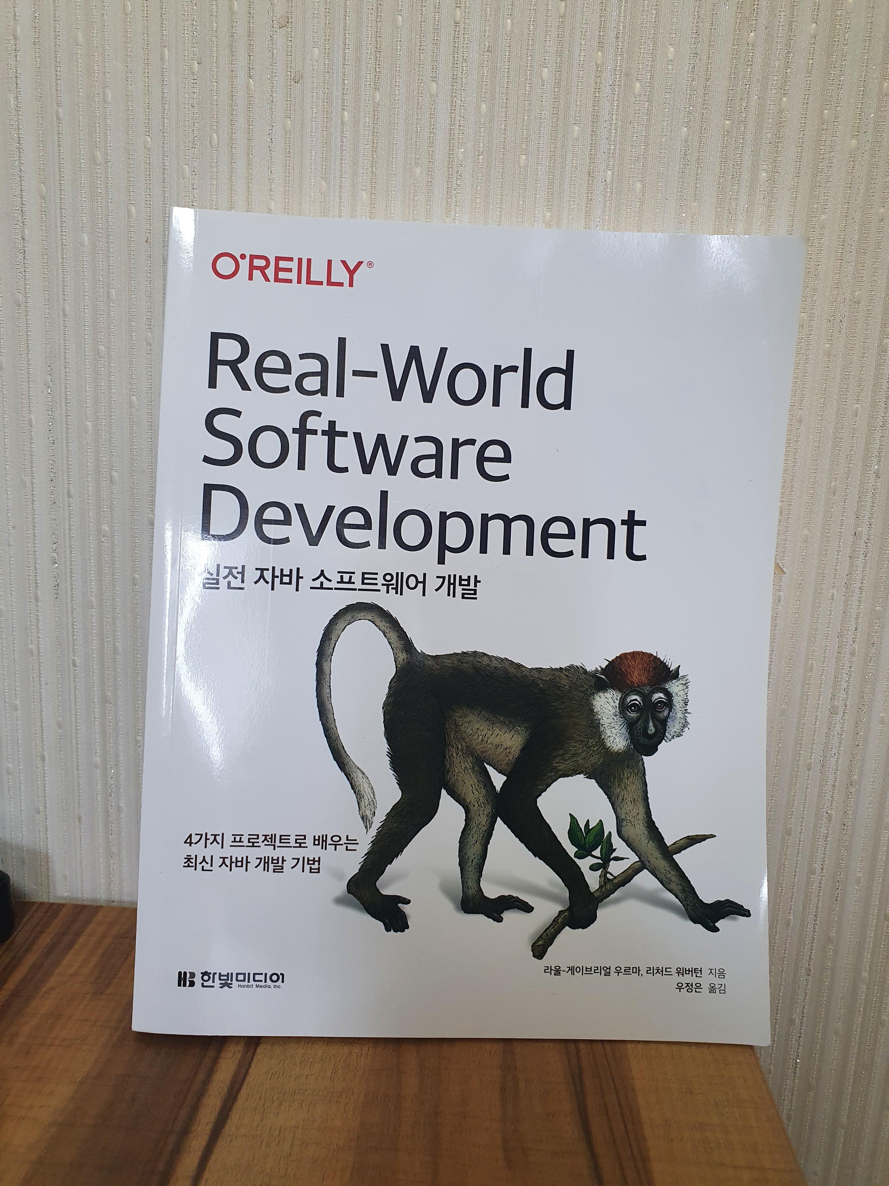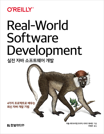 '실전 자바 소프트웨어 개발'이라는 책으로 이번 표지는 칼라망가베이라는 구세계원숭이를 모델로 하고 있습니다.