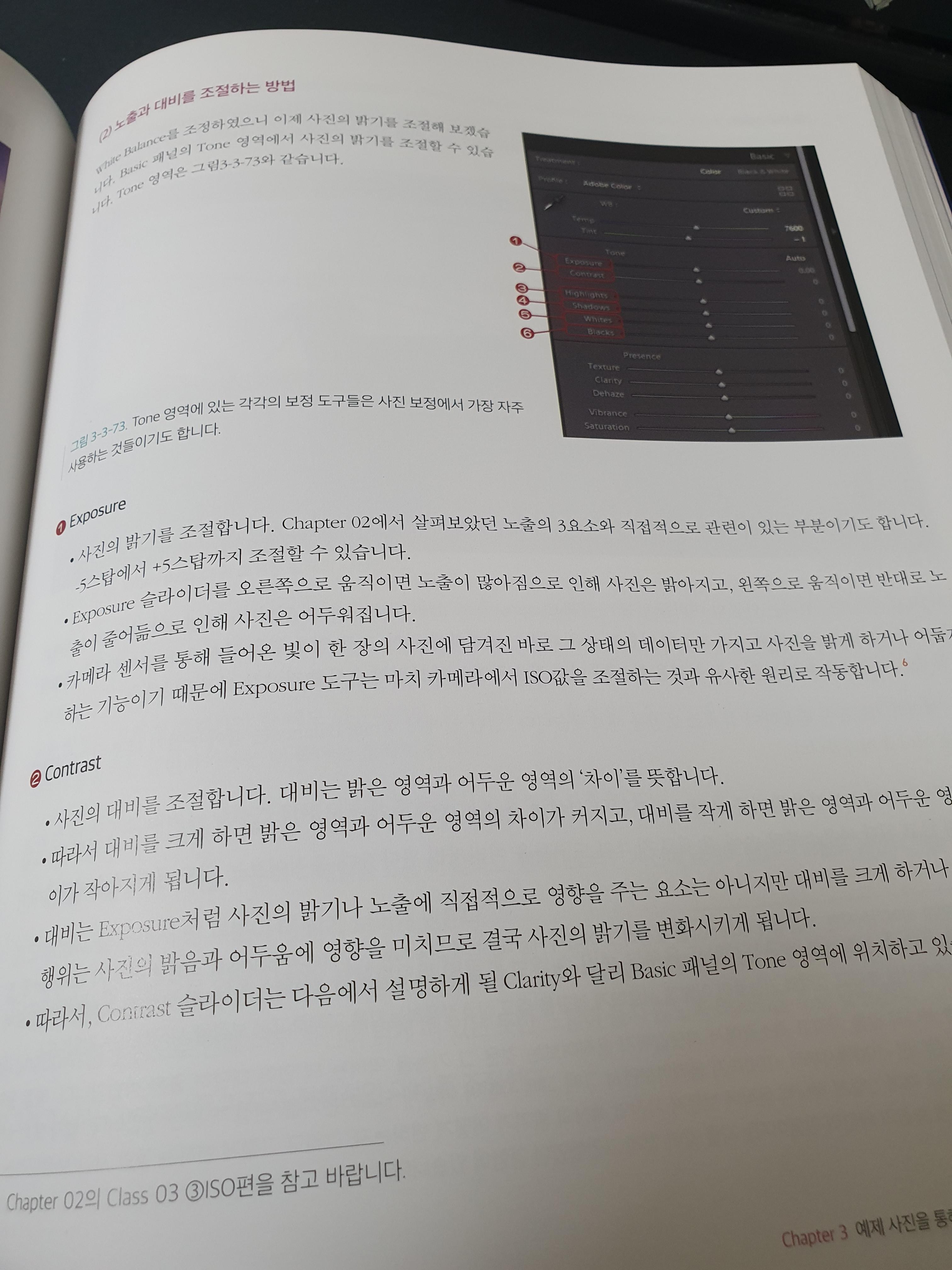 기존에 라이트룸 책은 라이트룸에 대한 설명만 가득한 책들이 많습니다. 그렇다보니 당연히 기능에 대한 설명이 주를 이루고 있는 책들이 많습니다. 하지만 이번 책은 좀 달랐습니다. 카메라에 대한 설명들이 나옵니다. 신기하기도 하고 카메라에 대한 내용을 라이트룸 책에서 보게 되니 당황하기도 했습니다.