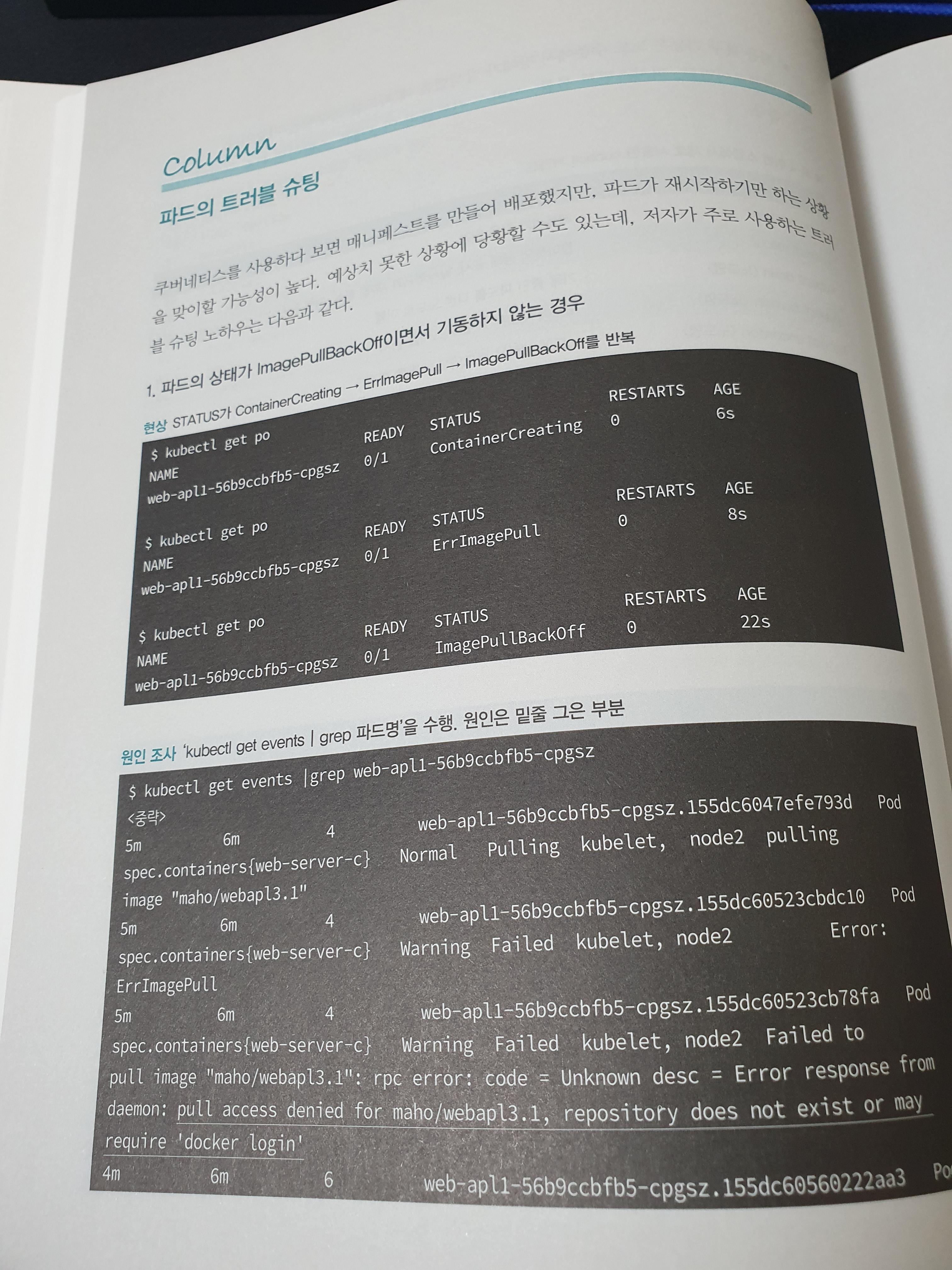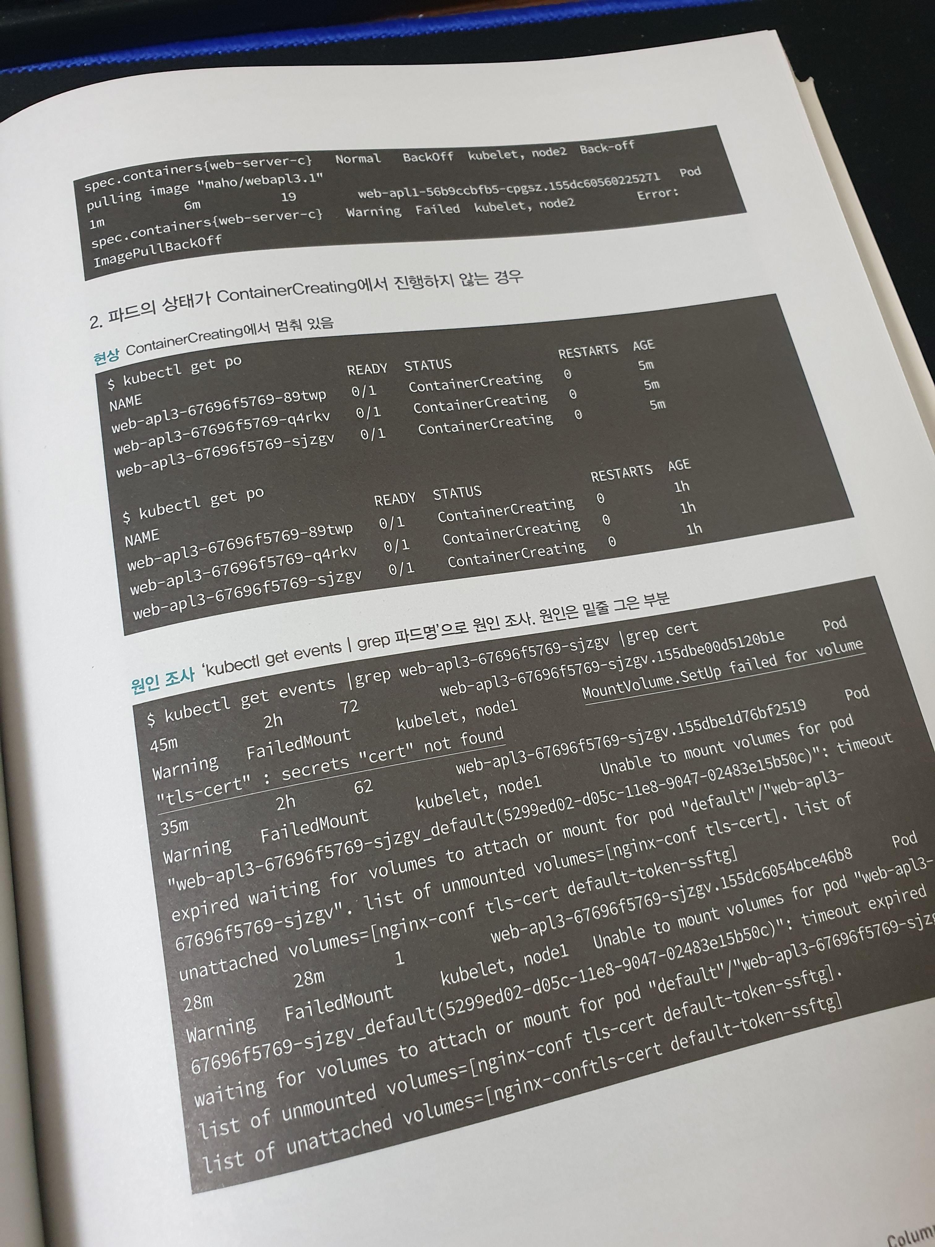 책에는 명령어를 치는것부터 결과값까지 모든 부분이 사진으로 나와 있으며, 이를 하나하나 설명해주고 있는 부분이 정말 좋습니다. 그 중에서도 좋게 느껴지는 부분은 쉽게 놓치고 갈 수 있는 트러블 슈팅에 대한 내용을 다루고 있다는 겁니다. 어떤 업무를 할 때 문제가 발생하더라도 그 이유를 모르면 어떻게 해결해야 하는지에 대한 방법을 알 수 없습니다. 책에서는 어떤 트러블들이 발생할 수 있고, 그럴 때에는 어떻게 해결할 수 있는지를 제시해주고 있어서 현재 오류가 없더라도 나중을 대비할 수 있도록 알려주는 부분이 마음에 들었습니다.