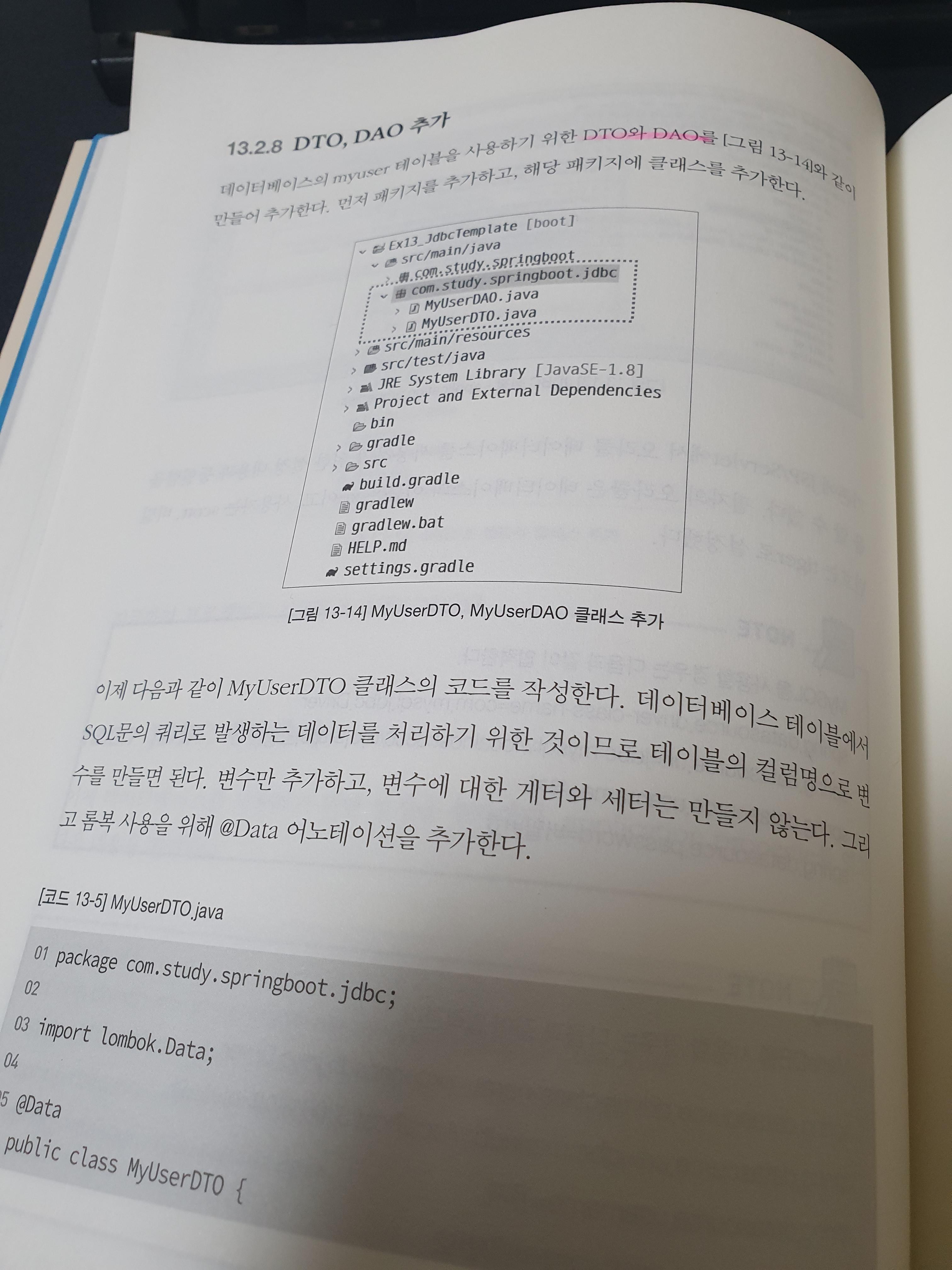 스프링을 공부하다보면 MVC 모델을 유지하기 위해 DTO와 DAO에 대해서 공부하게 됩니다. 물론 최근에는 DTO, DAO가 아닌 JPA를 통해 데이터를 조회하고 View로 Mapping하는 형태로 많이들 작업하고는 합니다. 또한 Command와 Query를 분리하는 형태로 작업을 진행합니다. 그렇다고 DTO, DAO가 중요하지 않다는 것은 아닙니다. 책에서는 이런 부분들도 상세하게 적어두었습니다. Mybatis를 통해 DB 조회를 할 수 있는 예제들이 많이 있으니 책을 참고해주세요.