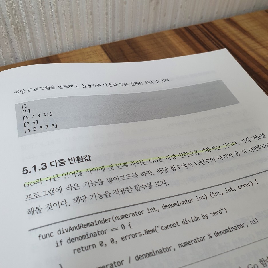 다른 언어들과의 다른 특징중 하나는 다중 반환값을 허용한다는 것이다. 이 부분은 너무 신기했다. 자바에서 다중으로 받으려면 Map, Pair, Turple 등을 이용해서 상황에 맞게 받을 수 있게 만들었던것 같은데 언어 자체가 다중 반환을 지원해준다니 너무나 감사할 따름이다.